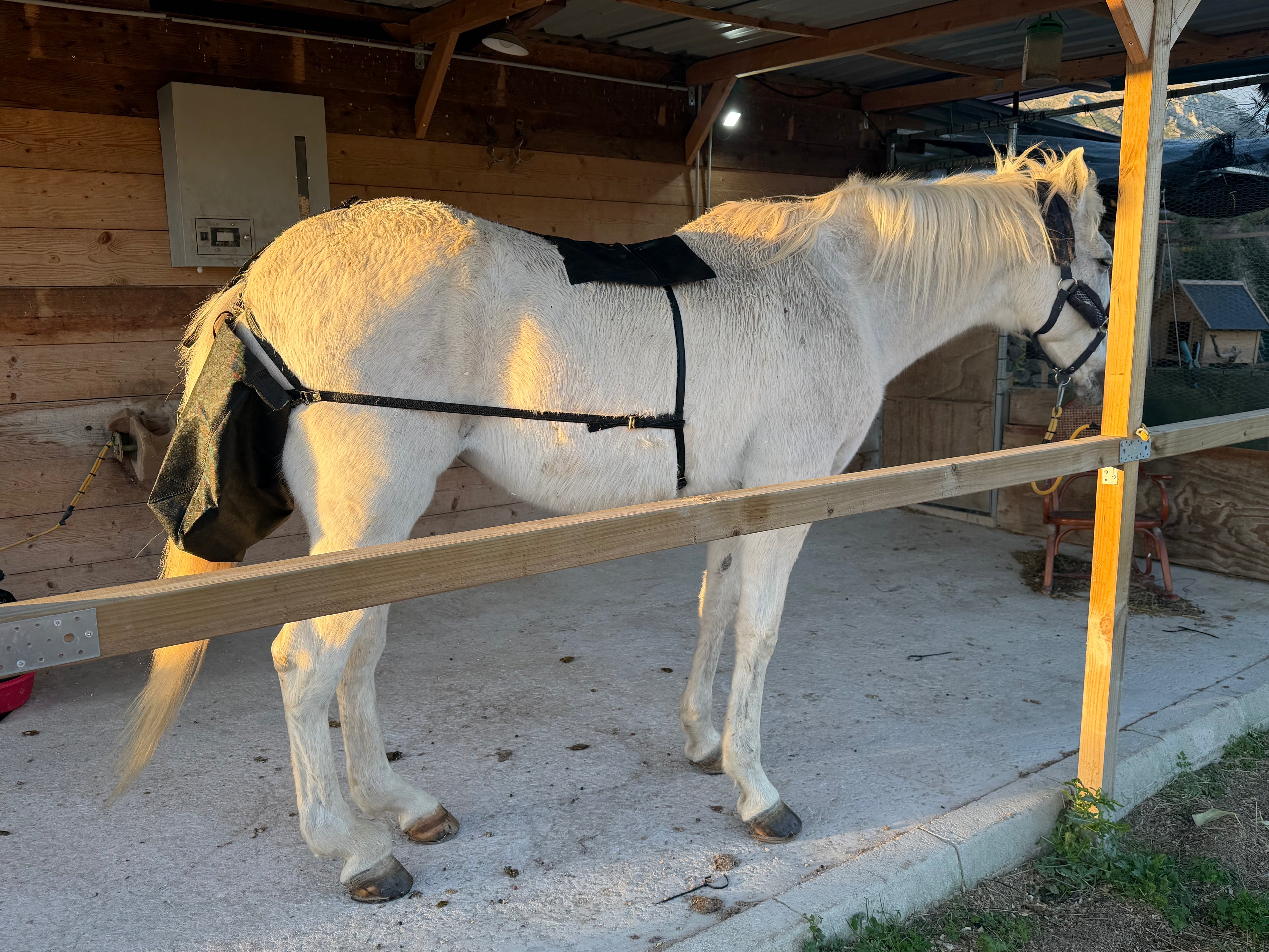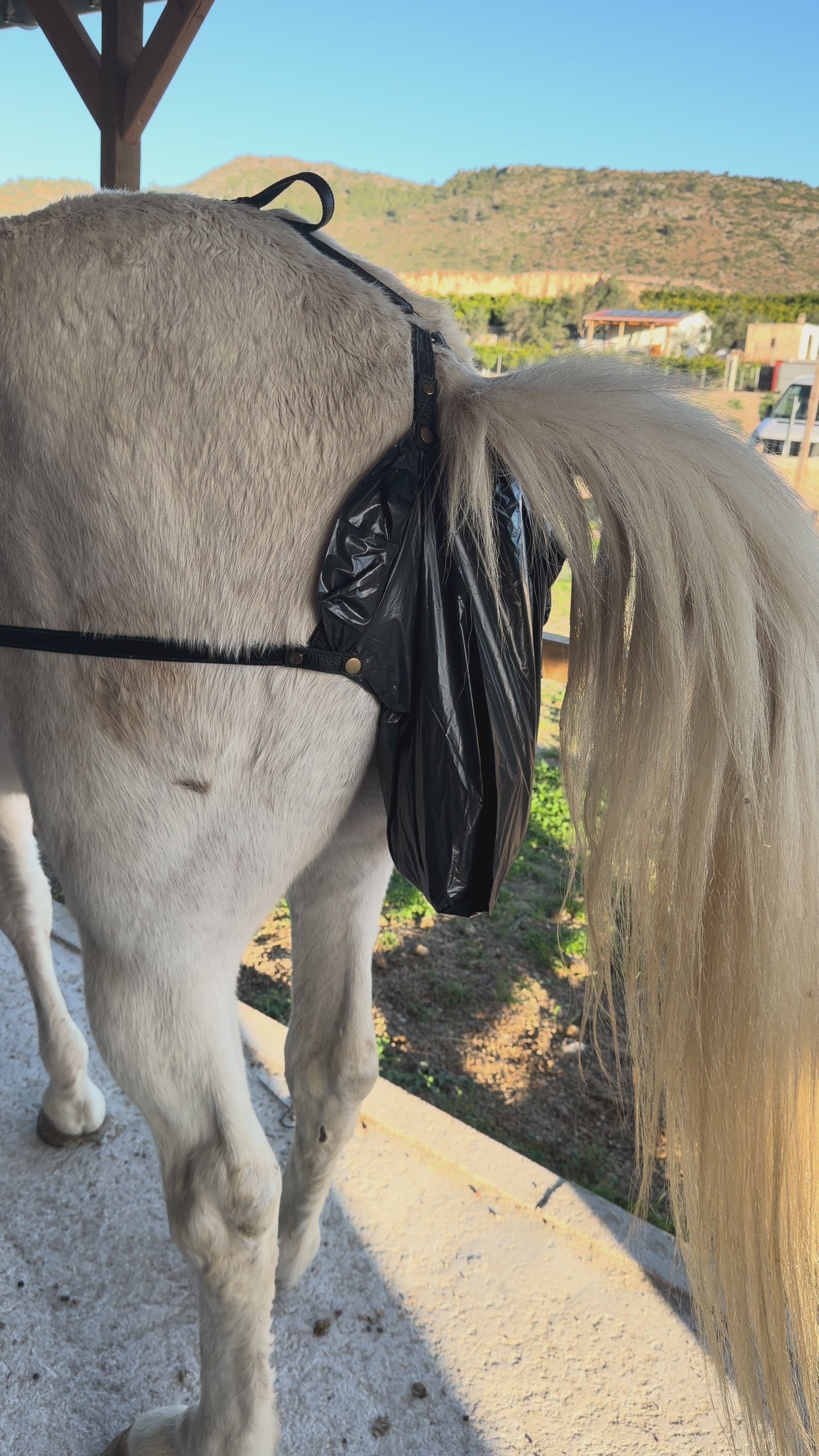 Nuestro arnés está diseñado para recoger los excrementos del caballo automáticamente mientras camina, manteniendo los espacios limpios.